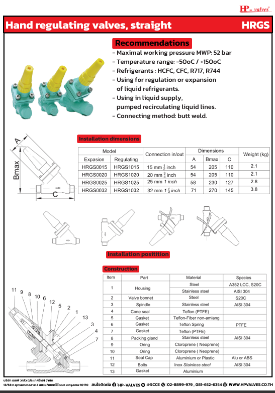 • Application: Used for regulation or expansion of liquid refrigerants