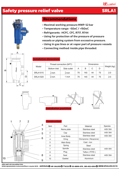 • Function: Used for protection of pressure vessels or piping systems from excessive pressure